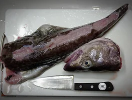 조금전에 잡은 우럭 머리로 매운탕 준비중....